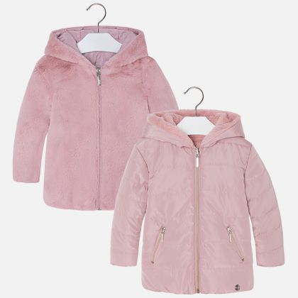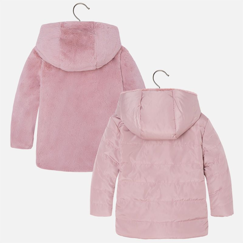 Krásná oboustranná zimní bundička s kapucí a kožíškem pro holčičku od kvalitní španělské značky MAYORAL.
