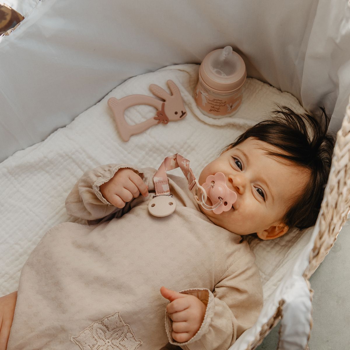 Před každým použitím, stejně jako před prvním použitím, dudlík důkladně očistěte. Vhodnou metodou je mytí vodou a mýdlem. Neskladujte ve vlhkém prostředí ani při vysokých teplotách. Nevhodné čisticí prostředky, které mohou dudlík a/nebo klip poškodit, zahrnují agresivní látky, jako jsou detergenty, rozpouštědla apod.