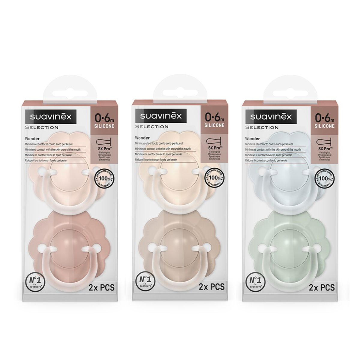 Dudlíky Wonderland jsou vybaveny fyziologickou savičkou SX Pro ze silikonu, která respektuje přirozený vývoj ústní dutiny dítěte. Díky plochému a symetrickému tvaru se vždy správně přizpůsobí v ústech.