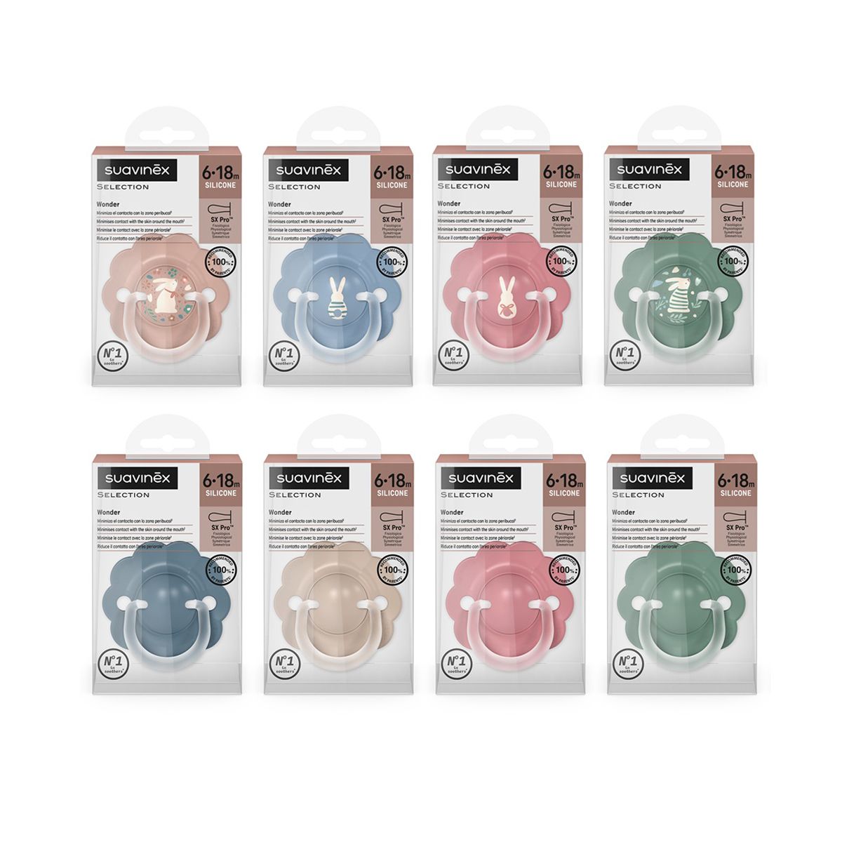 Dudlíky Wonderland jsou vybaveny fyziologickou savičkou SX Pro ze silikonu, která respektuje přirozený vývoj ústní dutiny dítěte. Díky plochému a symetrickému tvaru se vždy správně přizpůsobí v ústech.