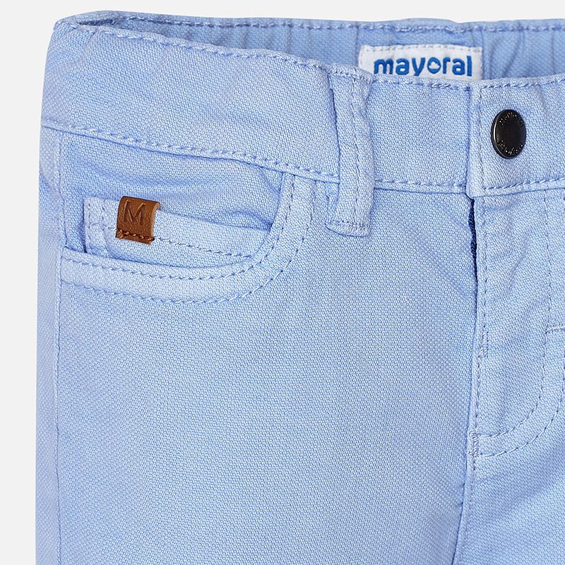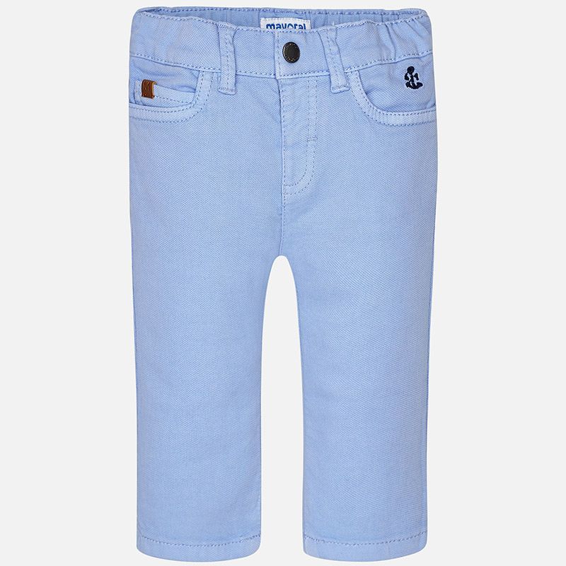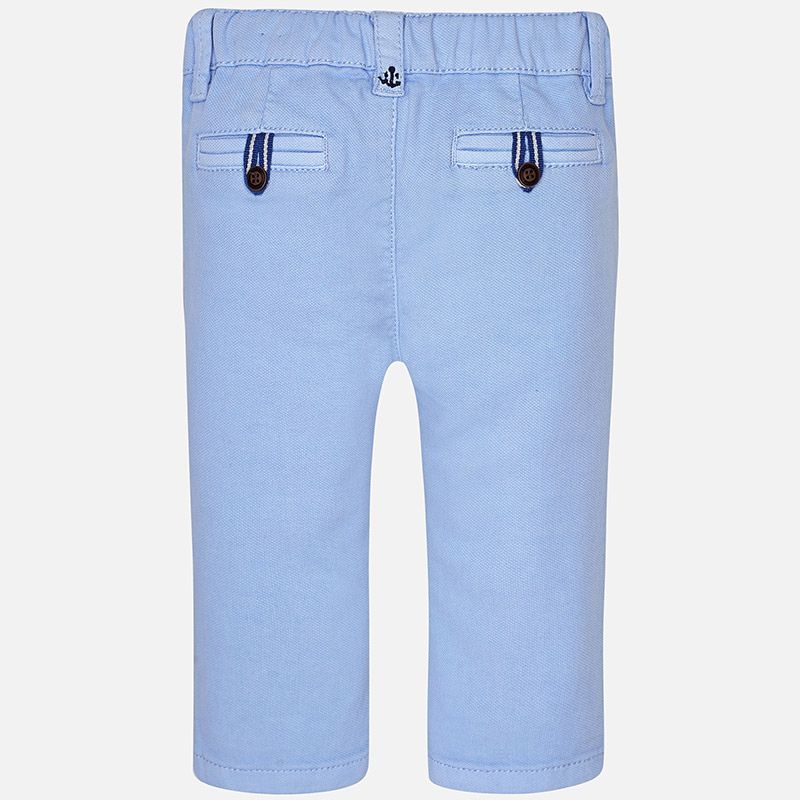 Krásné dlouhé modré kalhoty pro chlapečka od kvalitní španělské značky MAYORAL. Elegantní kalhoty s nastavitelným pasem, kapsami a zadními kapsami na knoflíky.