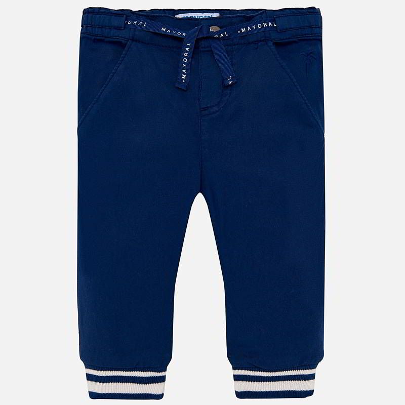 Krásné dlouhé modré tepláky pro chlapečka od kvalitní španělské značky MAYORAL. Tepláky s nastavitelným pasem, kapsami a zadními kapsami.