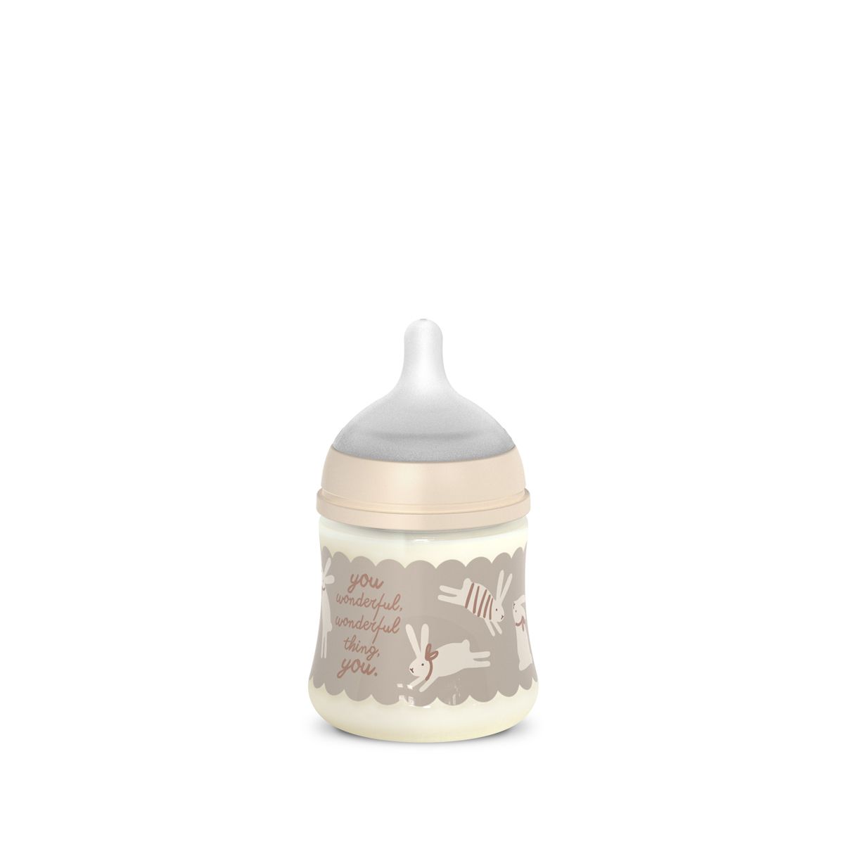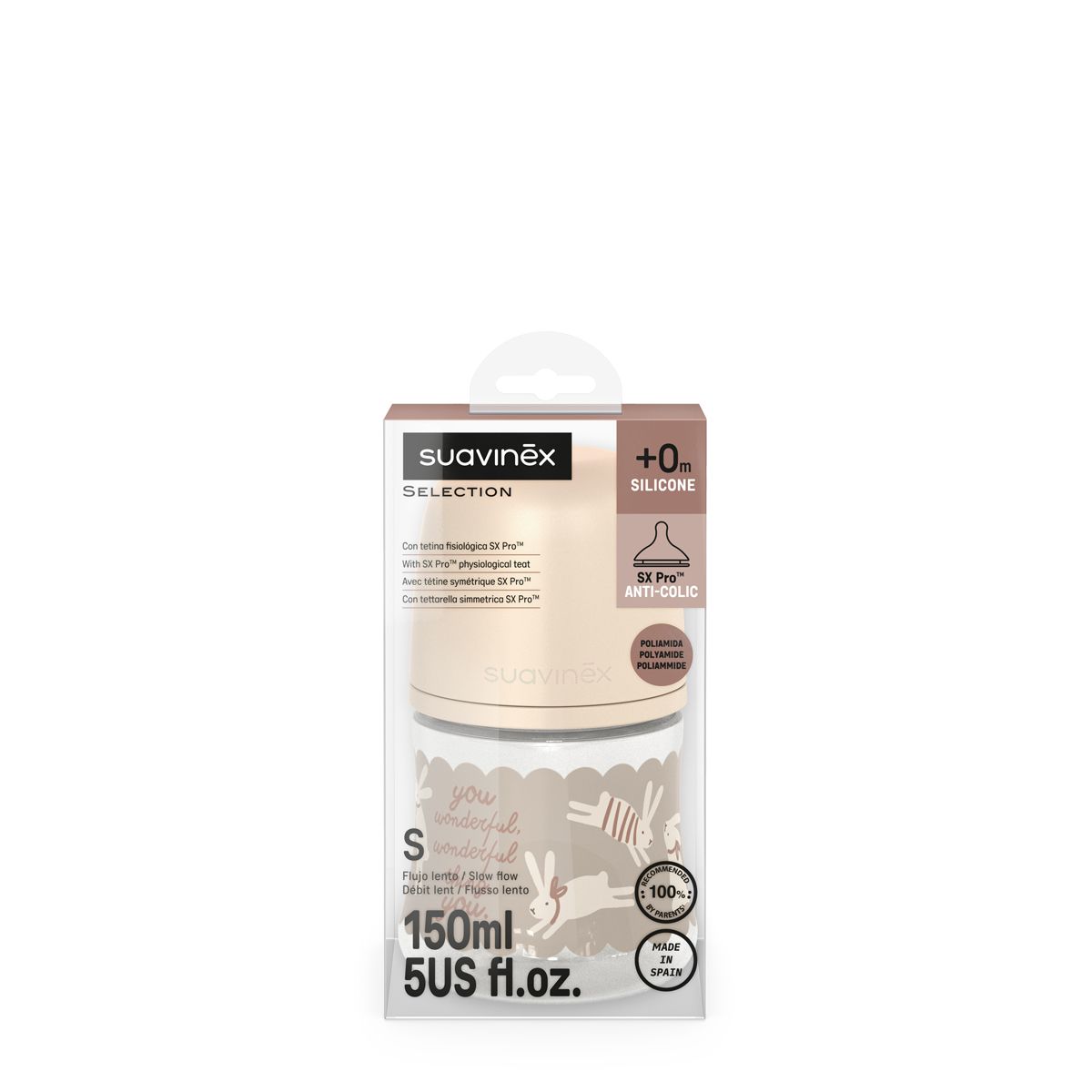 SUAVINEX | Kojenecká láhev WONDERLAND NEW 150ml FYZIOL PRŮTOK S - krémový králík