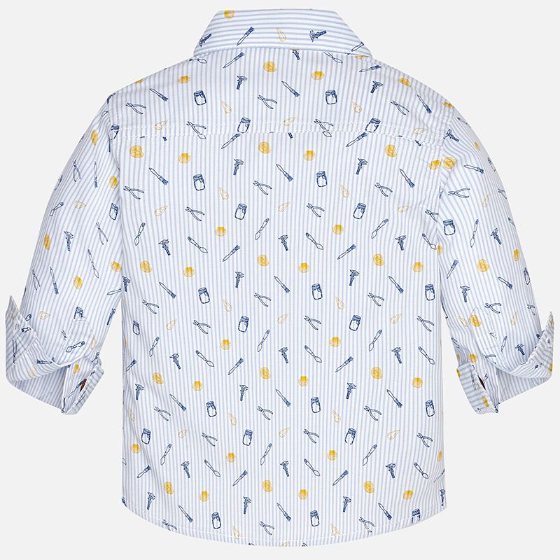 Stylová lehoučká košile se vzorem na léto s límečkem a kapsičkou pro chlapečka od kvalitní španělské značky MAXORAL. Košile má dlouhý rukáv, který lze ohrnout.