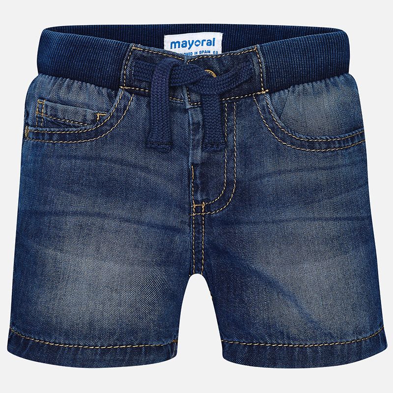 Krásné krátké JEANS kalhoty pro chlapečka od kvalitní španělské značky MAYORAL. Elegantní kraťásky z měkké jeans s nastavitelným pasem a ozdobným prošitím zadních kapes.