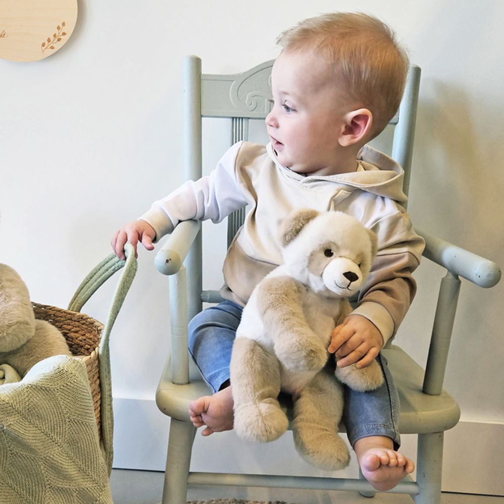 Panda Pinto, naše hebká bílá-béžová panda, je ideální mazlíček pro tvého malého dobrodruha. Se svou sametově hebkou srstí z recyklovaného plyše přináší útěchu, radost a nekonečné objetí. Přítel na celý život, připravený na každé dobrodružství.