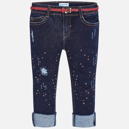 Krásné modré JEANS kalhoty pro malou parádnici od kvalitní španělské značky MAYORAL.
