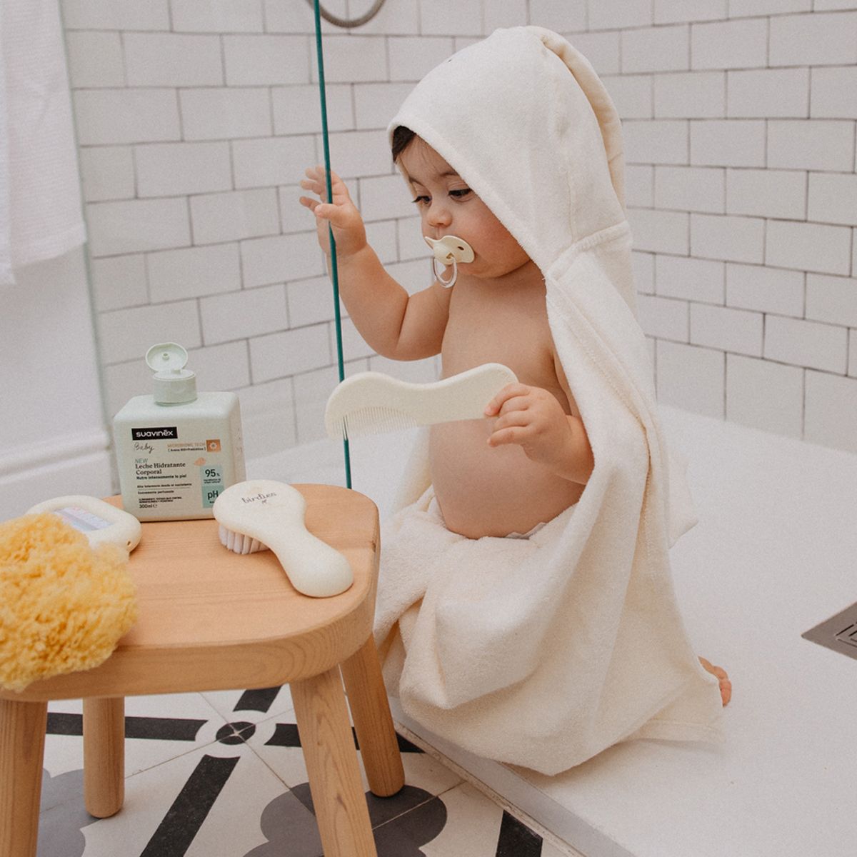 Set hřebenu a kartáčku je ideálním pomocníkem pro každodenní péči o vlásky děťátka. Dopřejte jemnou masáž i miminku, které má jen jemné chmýří. Kartáč i hřeben jsou bez ostrých a nebezpečných hran, které by mohly být dítěti nebezpečné. Zuby hřebínku mají zaoblené konce a vlákna kartáčku jsou měkoučké a pružné. Ideální pro jemnou dětskou pokožku i vlásky, vhodné pro miminka od narození.