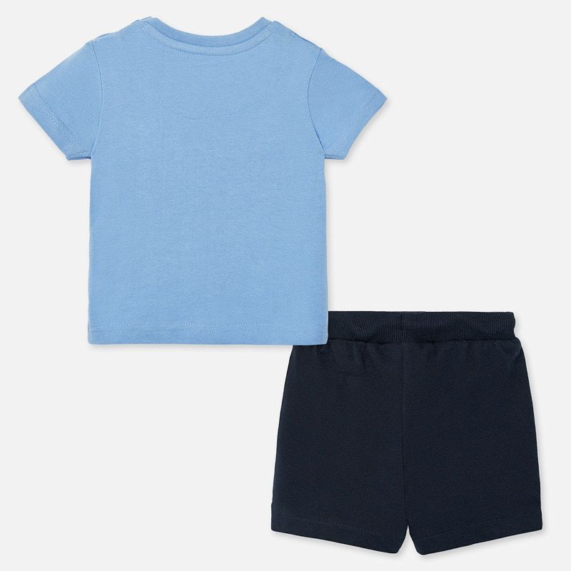 Krásný letní setík pro malého frajera od kvalitní španělské značky MAYORAL. Originální modré tričko s balonky + modré kraťásky.
