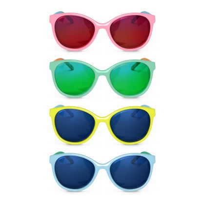 Důkaz, že být trendy není v rozporu s důrazem na bezpečnost, je ztělesněn v této nové kolekci stylových brýlí. Plastové ohebné obroučky ve velké barevné škále lze kombinovat s oblečením dětí a barevné čočky se zrcadlovým efektem jsou prakticky nerozbitné. Dostupné ve třech velikostech (12-24m, 24-36m, +36 měsíců), kdy každá z nich splňuje konkrétní požadavky v každé fázi vývoje dětí. Všechny mají společný rys, kterým je jejich kulatý nebo hranatý tvar pro lepší přizpůsobení, protože v raném věku není kořen nosu dětí ještě zcela vytvořen. S jakýmikoli brýlemi z této kolekce mohou děti běhat a skákat bez obav, že se jejich brýle rozbijí. Mají také další bezpečnostní prvky, především pro velikosti +36 měsíců, které jsou doplněny o šňůrku, která perfektně sedí na hlavě.