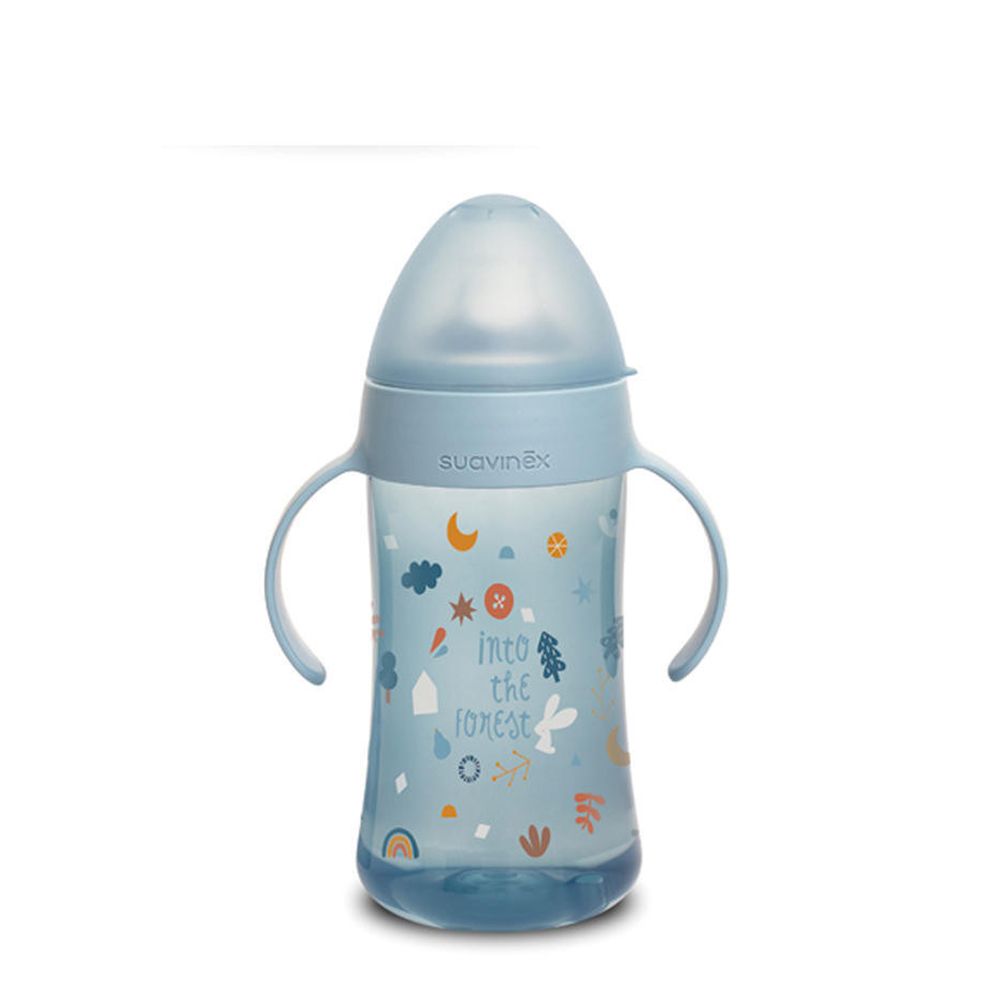 Druhá láhev s oušky se speciální savičkou usnadňuje přechod z kojenecké láhve na pití z hrníčku či sklenice. Silikonové pítko je měkké a materiálově shodné se savičkami kojeneckých lahví, proto ho Vaše děti přijmou rychleji než běžná tvrdá pítka. Druhá láhev má ergonomický tvar a držadla vhodná pro drobné dětské ruce, které umožní její snadné uchopení.
