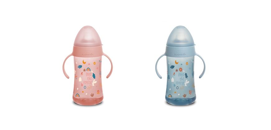 Druhá láhev s oušky se speciální savičkou usnadňuje přechod z kojenecké láhve na pití z hrníčku či sklenice. Silikonové pítko je měkké a materiálově shodné se savičkami kojeneckých lahví, proto ho Vaše děti přijmou rychleji než běžná tvrdá pítka. Druhá láhev má ergonomický tvar a držadla vhodná pro drobné dětské ruce, které umožní její snadné uchopení.