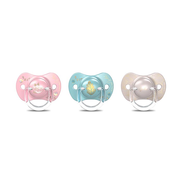 GOLD zlatá linie krásy a funkčnosti podložené pediatry a dětskými stomatology.   prémiové pozlacení silikonová savička SX ProTM fyziologická 6/18m Fyziologická savička vyvíjí téměř nulový tlak na horní patro a tím dodává pocit jakoby v ústech nebyla.
