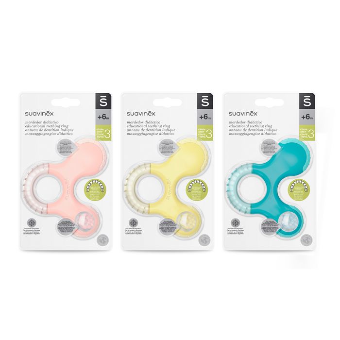 Kousátko STEP 3 – s chrastítkem, je určeno pro děti od 6 měsíců. Doporučuje se dětem v pozdějším stadiu růstu zoubků, kdy se klubou ven první stoličky. Vnější část je naplněna destilovanou vodou, kterou je možné zchladit v lednici, a tím napomoci zmírnit zánět dásní. Kousátko posílí prořezané zoubky a uleví dásním, zvuková stimulace chrastítka zároveň vyvolává přirozenou dětskou zvědavost.