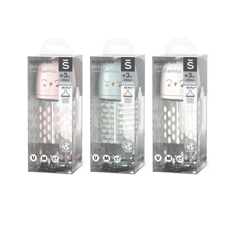 SUAVINEX | Láhev sklo BONHOMIA 240 ml fyziologická SX PRO +3 MF