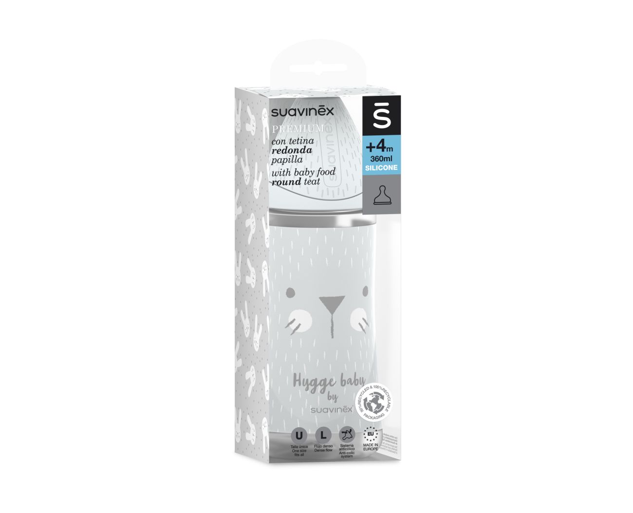 SUAVINEX | Premium láhev 360 ml L HYGGE vousky - šedá