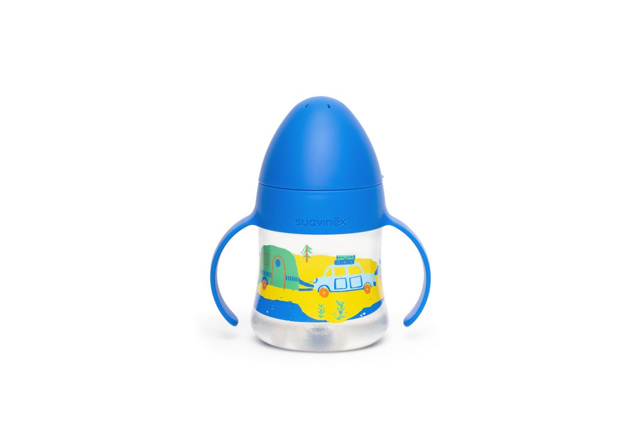 První láhev s oušky se speciální savičkou usnadňuje přechod z kojenecké láhve na pití, z hrníčku či sklenice. Silikonové pítko je měkké a materiálově shodné se savičkami kojeneckých lahví, proto ho Vaše děti přijmou rychleji než běžná tvrdá pítka. První láhev má ergonomický tvar a držadla vhodná pro drobné dětské ruce, které umožní její snadné uchopení. Netekoucí savička zabraňuje vytékání tekutiny z lahvičky.
