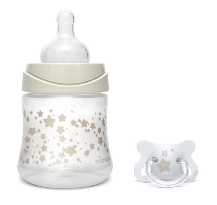 • 1 ks - širokohrdlá kojenecká láhev (150 ml, silikonová savička s pomalým průtokem, +0 m)