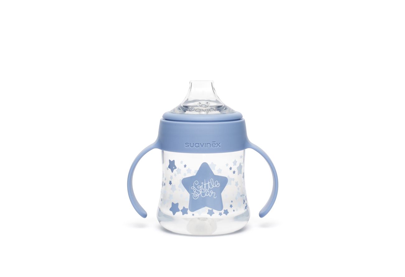 První láhev s oušky s nerozlitnou savičkou usnadňuje přechod z kojenecké láhve na pití z hrníčku či sklenice. Silikonové pítko je měkké a materiálově shodné se savičkami kojeneckých lahví, proto ho Vaše děti přijmou rychleji než běžná tvrdá pítka. První láhev má ergonomický tvar a držadla vhodná pro drobné dětské ruce, které umožní její snadné uchopení. Netekoucí savička zabraňuje vytékání tekutiny z lahvičky.
