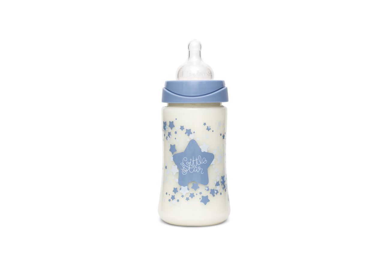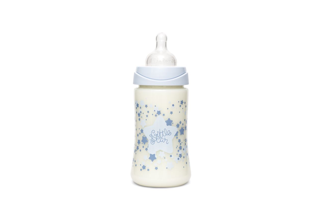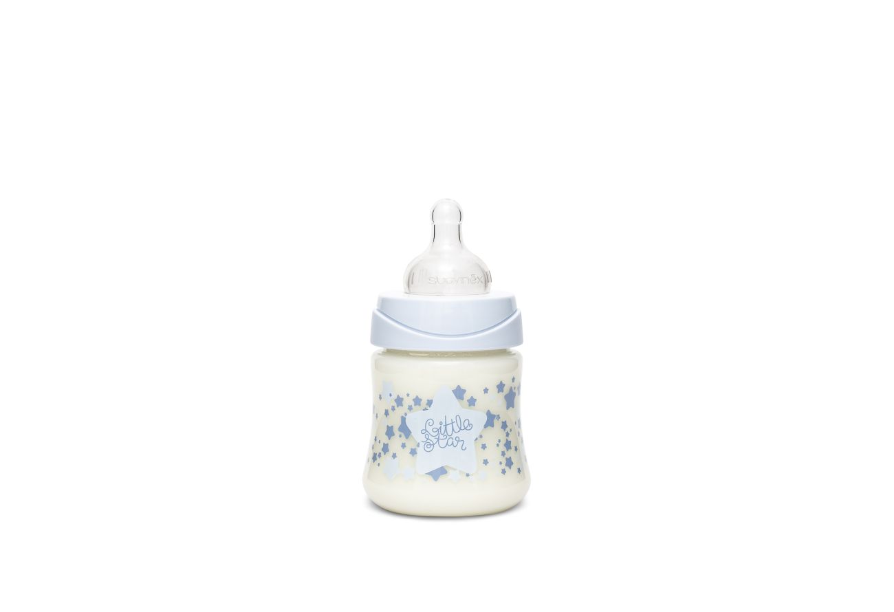 - 1 ks - širokohrdlá kojenecká láhev (150 ml, silikonová savička s pomalým průtokem, +0 m)