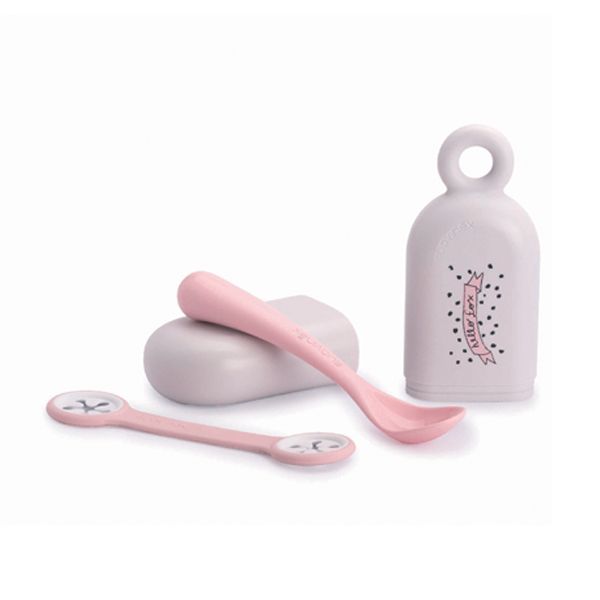 Obsahuje ergonomicky tvarovanou lžíci pro dětskou výživu, polévku a jiné jídlo polotekuté konzistence a také speciální sponku, která Vám zaručí, že dokážete i z obyčejného ubrousku vykouzlit tolik potřebný bryndák. Díky praktické krabičce budete moci lžíci přepravovat hygienicky a po jídle ji ušpiněnou bezpečně odložit.