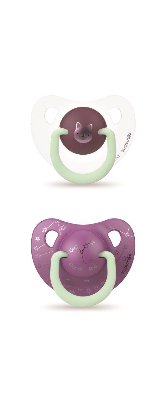 SUAVINEX | Šidítko DEN&NOC anatomické silikon 6-18 m - 2 ks - fialová kočka
