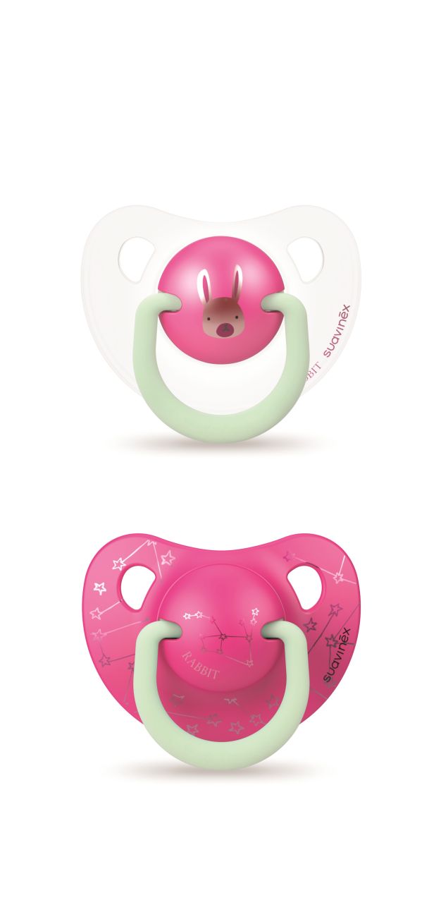 SUAVINEX | Šidítko DEN&NOC anatomické silikon 6-18 m - 2 ks - růžový králík