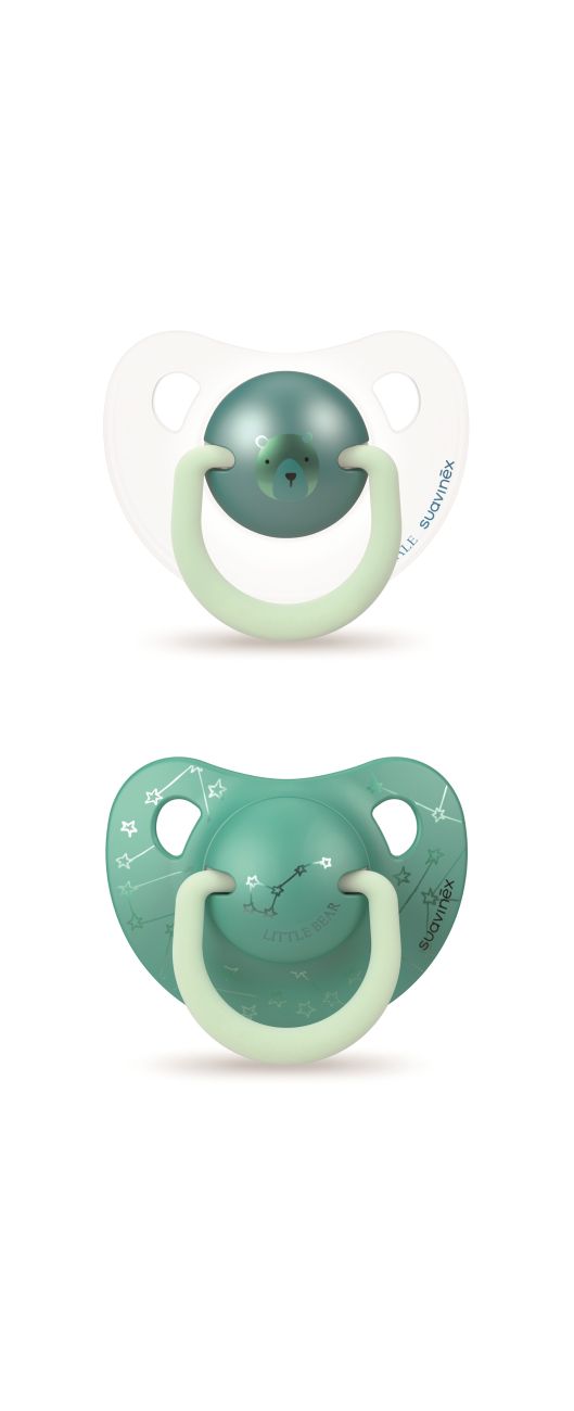 SUAVINEX | Šidítko DEN&NOC anatomické silikon 6-18 m - 2 ks - zelený medvěd