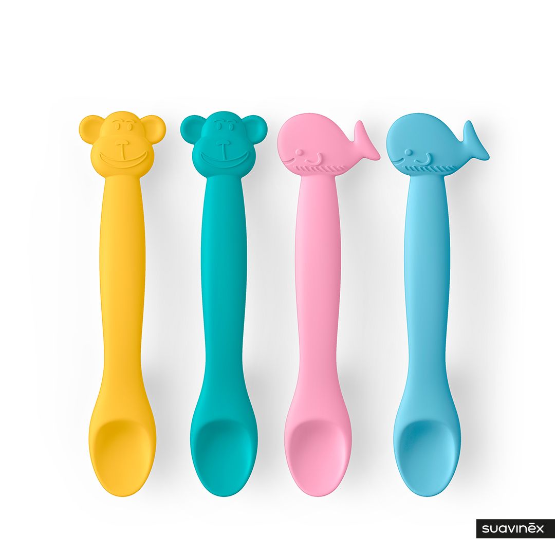 SUAVINEX | Silikonová lžička OPIČKA - ŽLUTÁ