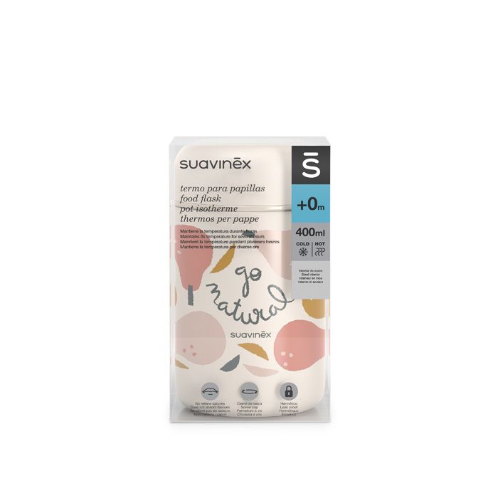Termoska na příkrmy řady GO NATURAL značky Suavinex umožňuje přepravovat pyré nebo pevné potraviny - uchovává teplotu po dobu až 6 hodiny. Je velkým pomocníkem při výletech s dětmi ven nebo při přípravě příkrmů předem pro noční krmení. Teplota se nepřenáší na povrch nádoby.