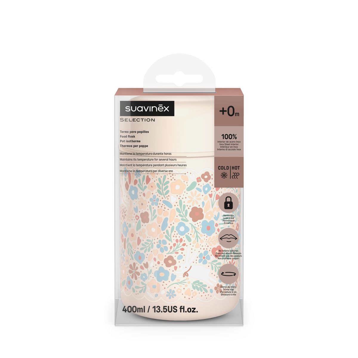 Termoska na příkrmy řady WONDERLAND značky Suavinex umožňuje přepravovat pyré nebo pevné potraviny - uchovává teplotu po dobu až 6 hodiny. Je velkým pomocníkem při výletech s dětmi ven nebo při přípravě příkrmů předem pro noční krmení. Teplota se nepřenáší na povrch nádoby.