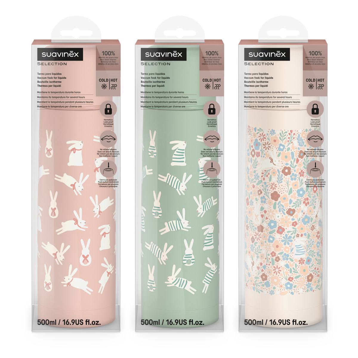 Termoska na tekutiny řady WONDERLAND značky Suavinex je ideální pro uchování a přepravu teplých i chladných nápojů - uchovává teplotu tekutin po dobu až 4 hodin. Je velkým pomocníkem při výletech s dětmi ven nebo při přípravě mléka předem pro noční krmení. Má široké hrdlo a všechny její hrany jsou zaoblené – snadno se čistí a neusazují se bakterie.
