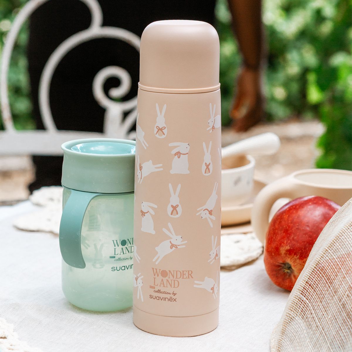 Termoska na tekutiny řady  WONDERLAND značky Suavinex je ideální pro uchování a přepravu teplých i chladných nápojů - uchovává teplotu tekutin po dobu až 4 hodin. Je velkým pomocníkem při výletech s dětmi ven nebo při přípravě mléka předem pro noční krmení.