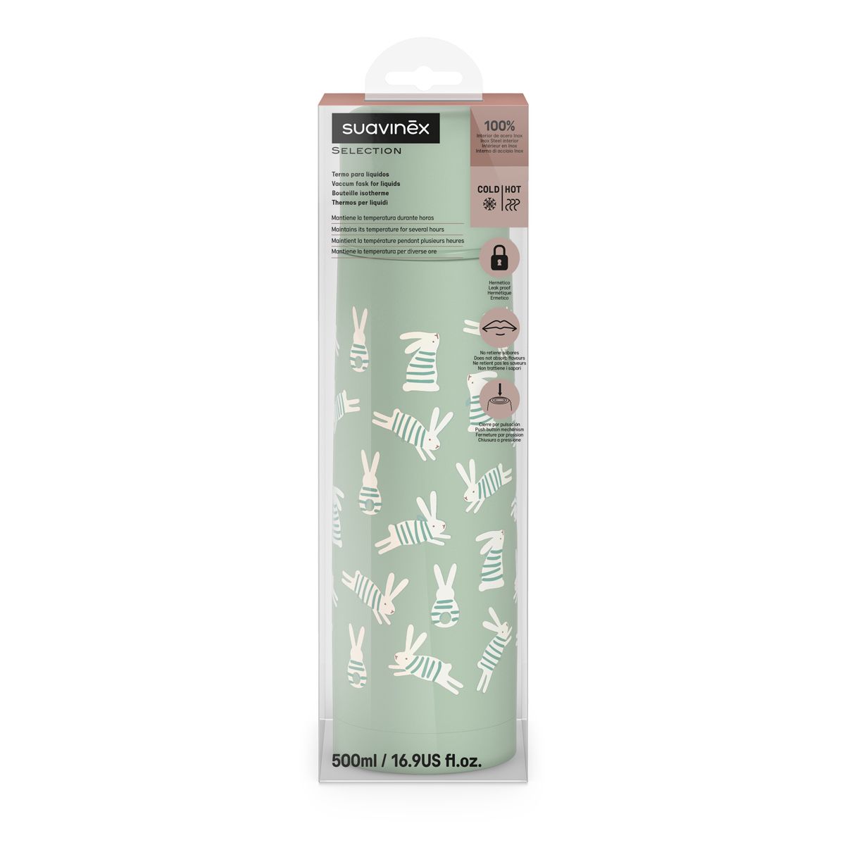 Termoska na tekutiny řady WONDERLAND značky Suavinex je ideální pro uchování a přepravu teplých i chladných nápojů - uchovává teplotu tekutin po dobu až 4 hodin. Je velkým pomocníkem při výletech s dětmi ven nebo při přípravě mléka předem pro noční krmení. Má široké hrdlo a všechny její hrany jsou zaoblené – snadno se čistí a neusazují se bakterie.