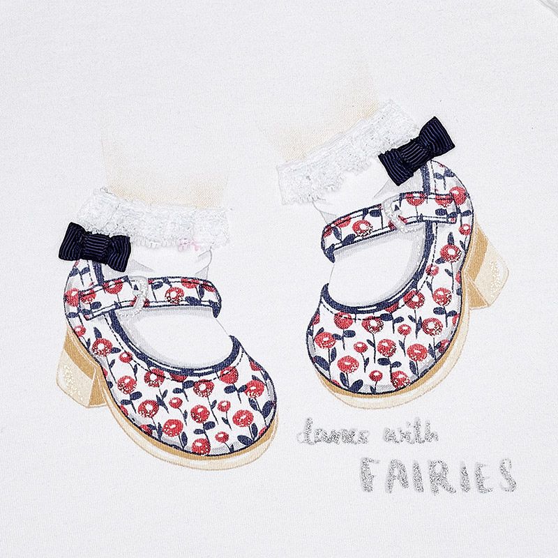 Letní bílé tričko s krátkým rukávem a botičkami pro holčičky od kvalitní španělské značky MAYORAL.