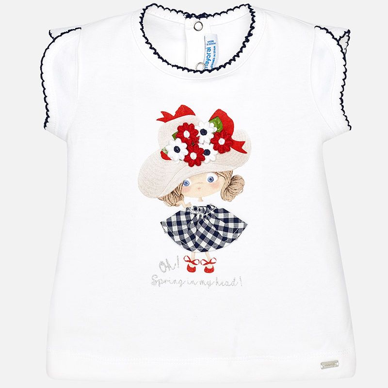 Letní bílé tričko s krátkým rukávem s módní panenkou pro holčičky od kvalitní španělské značky MAYORAL.