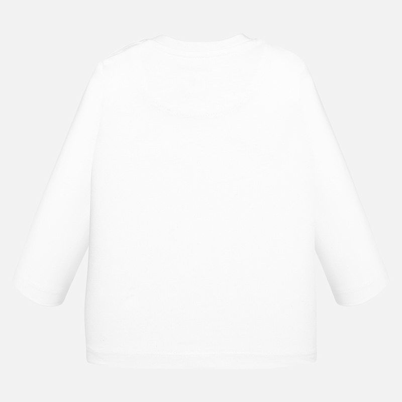 Krásné bílé tričko s dlouhým rukávem ideální pro podzimní sezónu pro malého chlapečka od kvalitní španělské značky MAYORAL. Jednoduché triko s kulatým výstřihem a obrázkem pejsků jedoucích na výlet pro velkou radost malých rarášků.