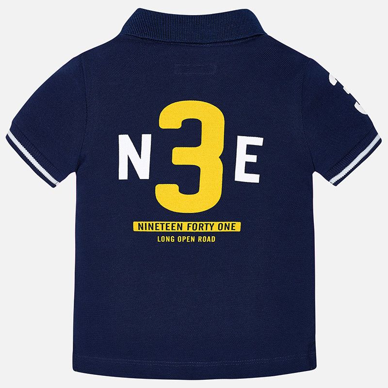 Krásné  POLO tričko s krátkým rukávem ideální pro jarní sezónu pro malého chlapečka od kvalitní španělské značky MAYORAL. Elegantní POLO triko v námořnickém design. Na zadní části a rukávku číslo.