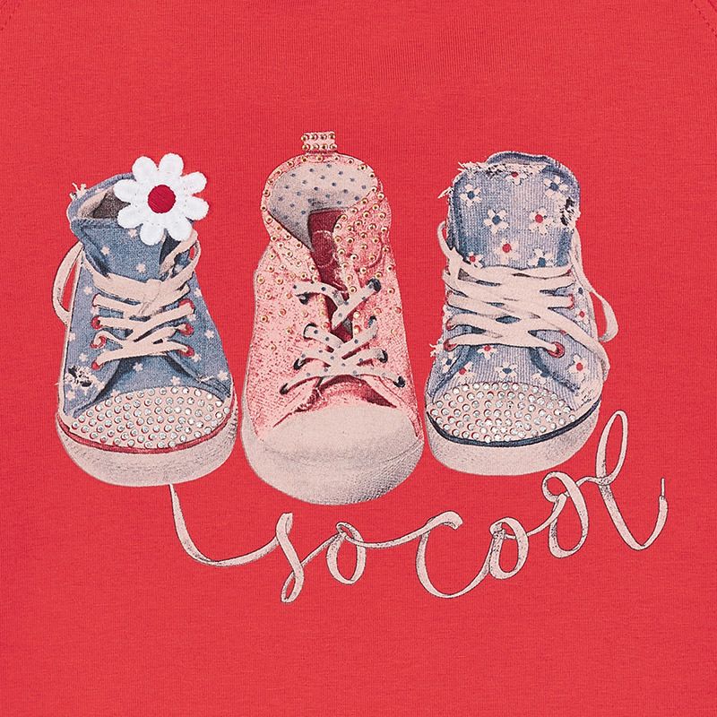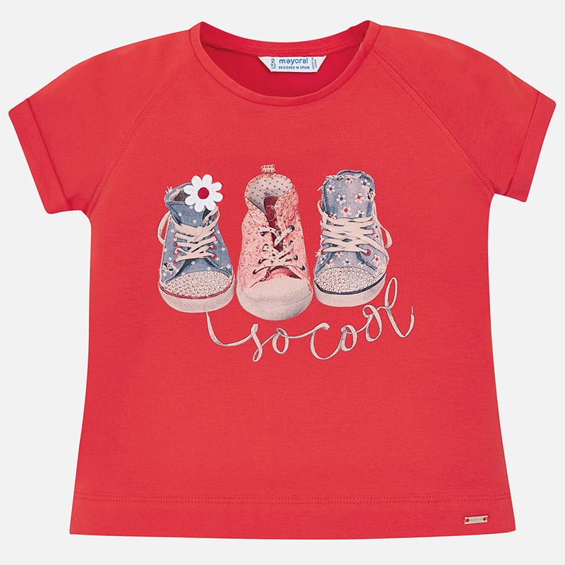Krásné červené tričko krátký rukáv s botičkama pro holčičku od kvalitní značky MAYORAL.