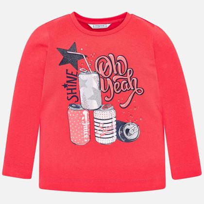 Krásné růžové tričko dlouhý rukáv s barevnými plechovkami pro holčičku od kvalitní značky MAYORAL.