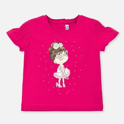 Letní malinové tričko s krátkým rukávem s malou parádnicí pro holčičky od kvalitní španělské značky MAYORAL.