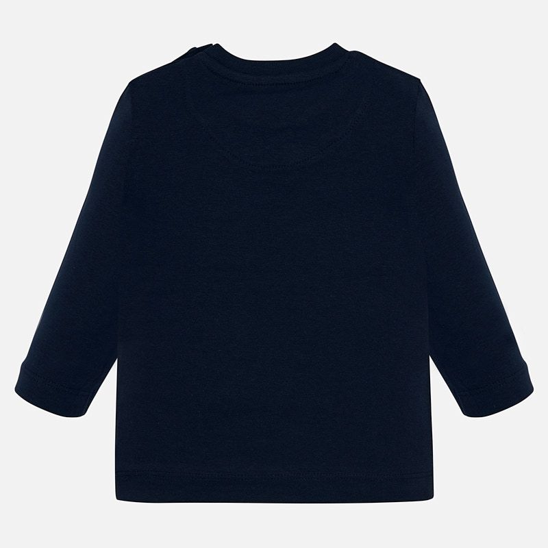 Krásné modré tričko s dlouhým rukávem ideální pro podzimní sezónu pro malého chlapečka od kvalitní španělské značky MAYORAL. Jednoduché triko s kulatým výstřihem s obrázkem auta pro velkou radost malých rarášků.