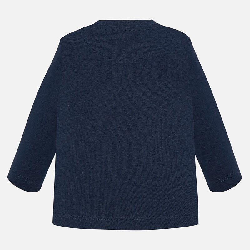 Krásné modré tričko s dlouhým rukávem ideální pro podzimní sezónu pro malého chlapečka od kvalitní španělské značky MAYORAL. Jednoduché triko s kulatým výstřihem a obrázkem pošťáka nesoucího noviny pro velkou radost malých rarášků.