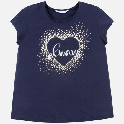 Krásné modré tričko krátký rukáv se srdíčkem pro holčičku od kvalitní značky MAYORAL.