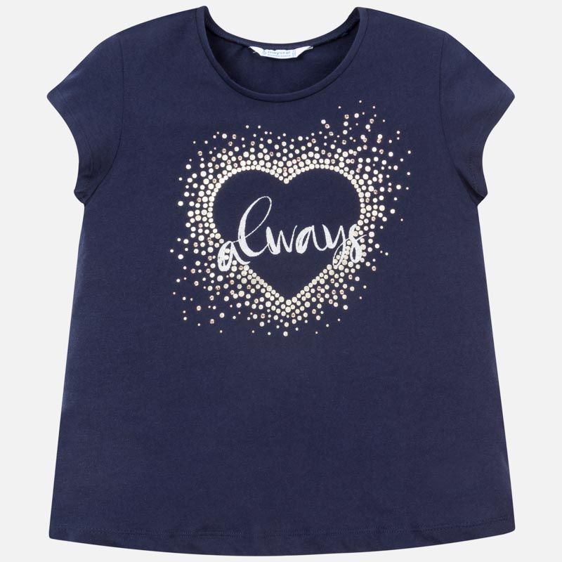 Krásné modré tričko krátký rukáv se srdíčkem pro holčičku od kvalitní značky MAYORAL.