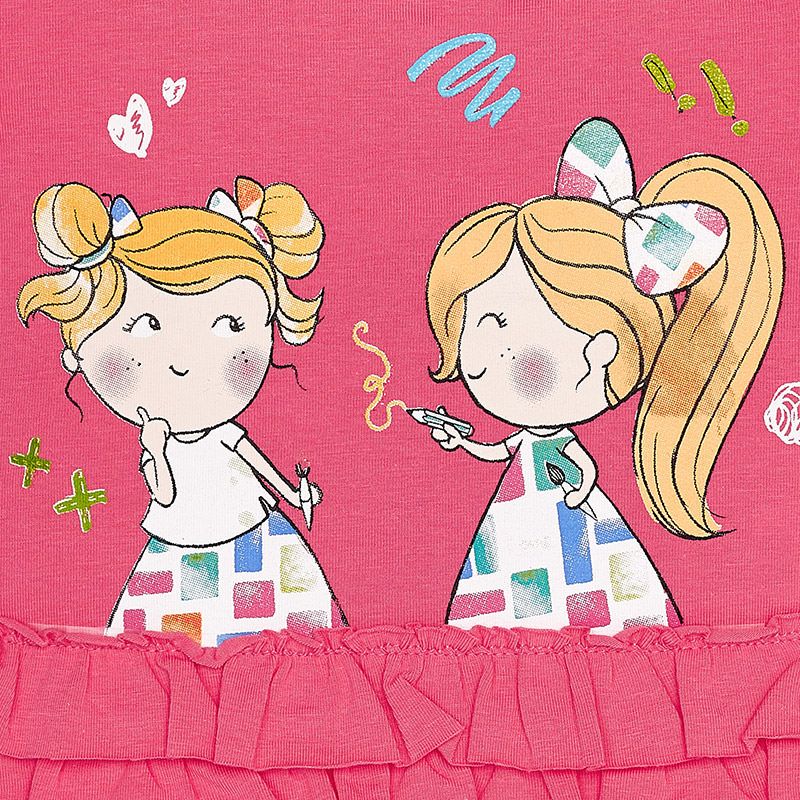 Letní růžové tričko s krátkým rukávem s kamarádkami pro holčičky od kvalitní španělské značky MAYORAL.