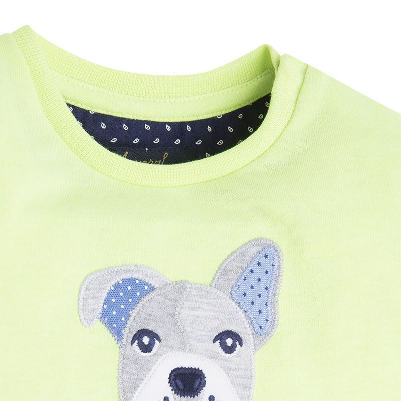 Krásné zelené tričko s krátkým rukávem ideální pro letní sezónu pro malého chlapečka od kvalitní španělské značky MAYORAL. Jednoduché triko s kulatým výstřihem a obrázkem buldočka pro velkou radost malých rarášků.