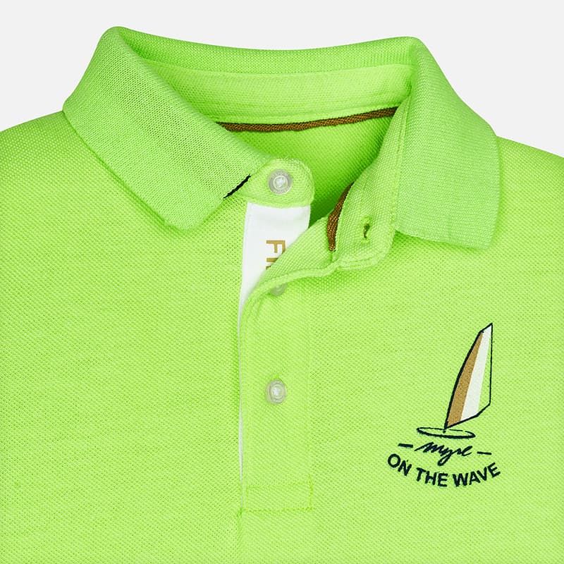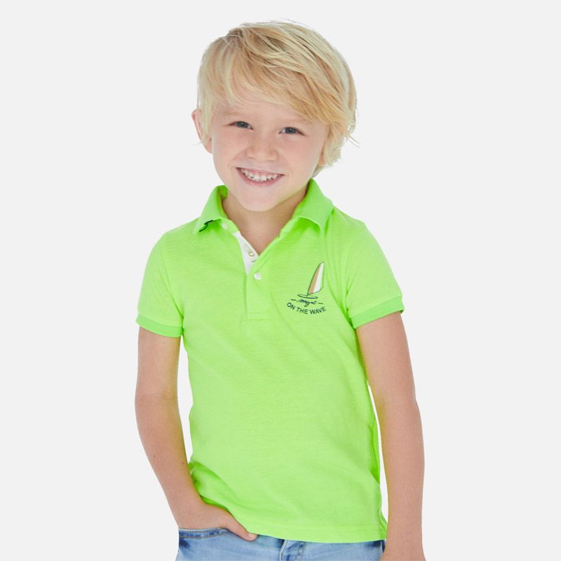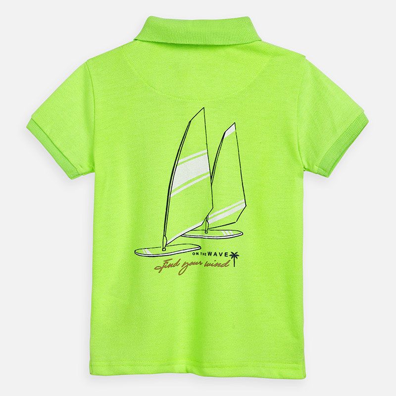 Krásné tričko s krátkým rukávem a límečkem pro chlapečka od kvalitní španělské značky MAYORAL. Jednoduché triko s obrázkem na zádech pro velkou radost malých rarášků.