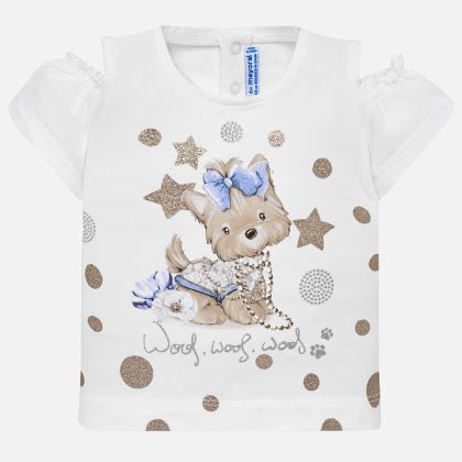 Letní bílé tričko s krátkým rukávem s pejskem pro holčičky od kvalitní španělské značky MAYORAL.